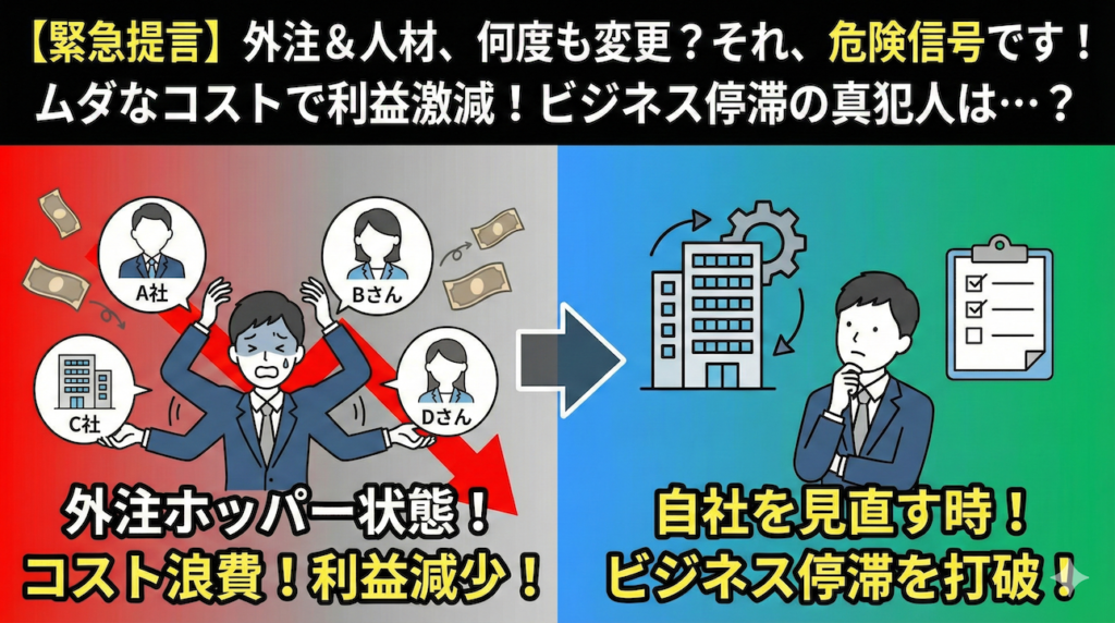 「あの制作会社は提案力がなかった」「採用した人材がすぐに辞めてしまった」 ビジネスを進める上で、外部パートナーや人材に関する悩みは尽きないものです。 しかし、もしあなたが短期間に何度も外注先を変更したり、採用した人材が定 […]